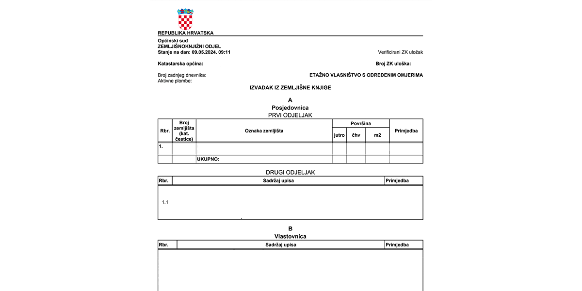 Za usklađenje katastara i zemljišne knjige potrebni su ovi dokumenti: